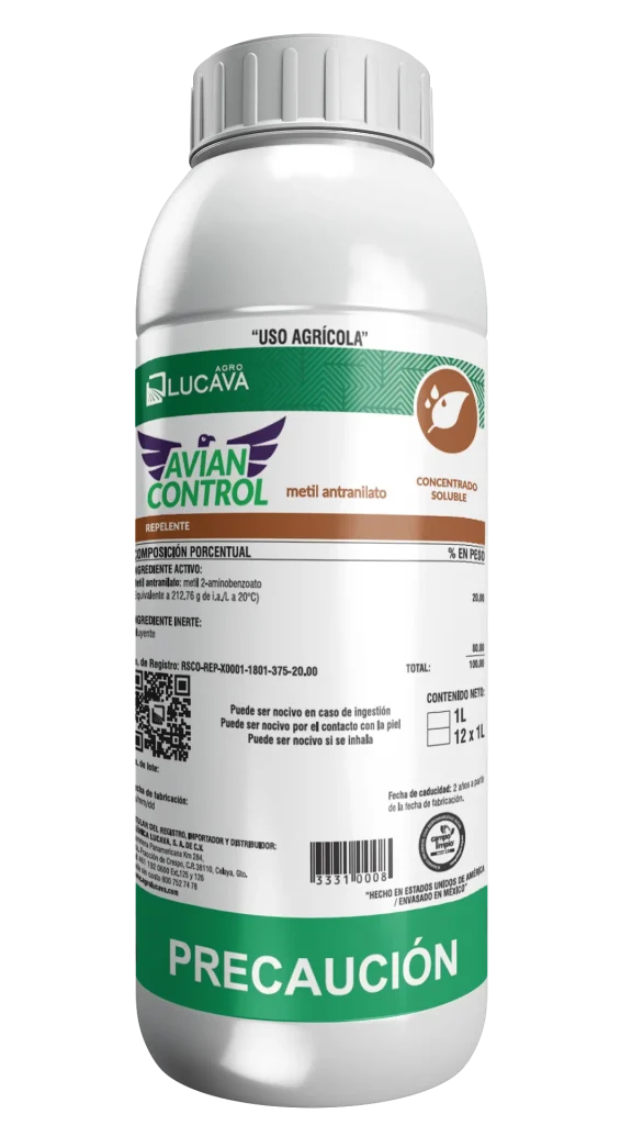 No mezclar AVIAN CONTROL, con otros productos. Sin embargo, si se desea mezclar se recomienda que la mezcla se realice con los productos registrados ante la Autoridad competente para el cultivo recomendado en la etiqueta, haciendo pruebas preliminares de compatibilidad física y fitotoxicidad previas a la aplicación.