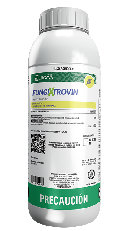 No mezclar FUNGIXTROVIN con otros productos agroquímicos. Sin embargo, si se desea mezclar se recomienda que la mezcla se realice con los productos registrados ante la Autoridad competente para el cultivo recomendado en la etiqueta, haciendo pruebas preliminares de compatibilidad física y fitotoxicidad previas a la aplicación.